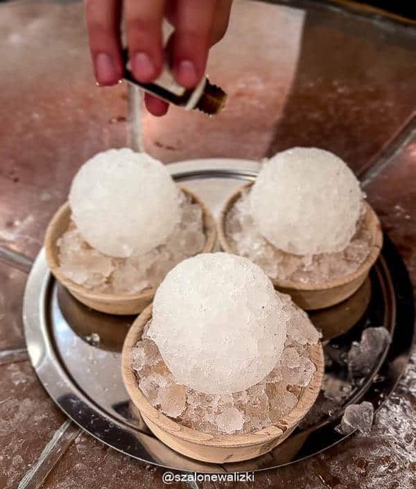 Nasz mistrz stosował też lodowe kule z aromatami drzewnymi, które bardzo nam się podobały.