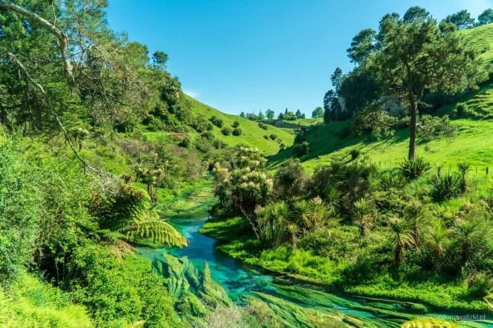 Ostatnio siedzieliśmy z przyjaciółmi i rozważaliśmy czy woda ma kolor a jeśli tak to jaki? Oczywiście pierwsze odpowiedzi jakie padają to – kolor butelki. Ale uwierzcie, że gdy zobaczycie Blue Spring w Nowej Zelandii przekonacie się, że woda może mieć kolor. Kolor najpiękniejszego błękitu i lazuru. Dokładnie taki jaki można zobaczyć podczas spaceru po ścieżce Waihou Walkway.