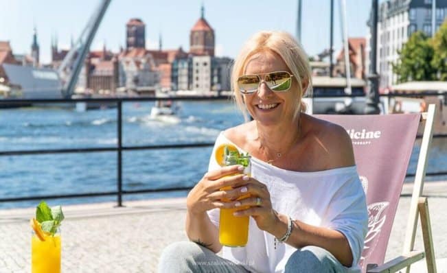 a wieczorem polecamy wizytę w jednym z lepszym Sky Barów w tej części Gdańska. Widok na Motławę, Bazylikę i Główne Miasto o zachodzie słońca – bezcenny.