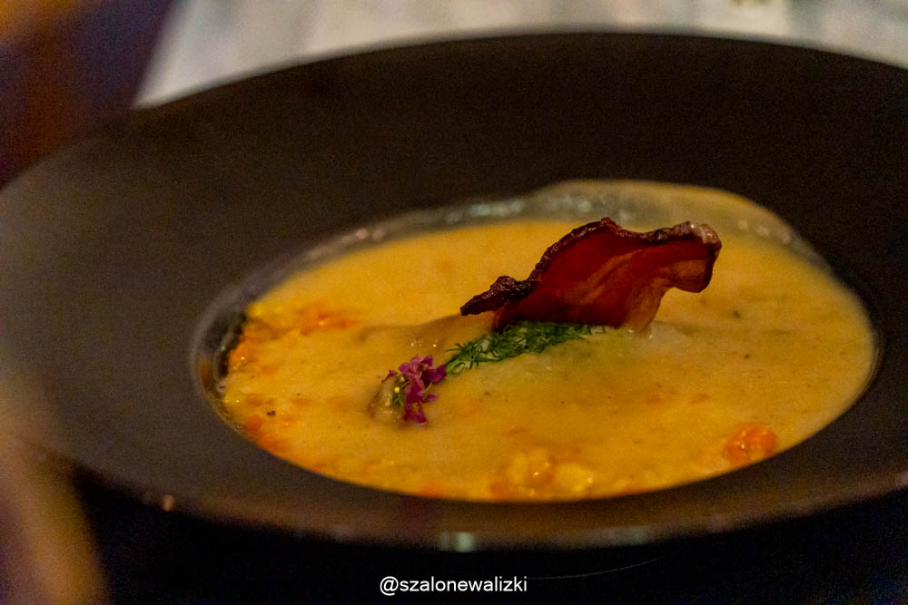 Do tego zamówiliśmy zupę-krem z młodej kapusty. Uwielbiamy takie smaki sezonowe, a to jest smak domu.
