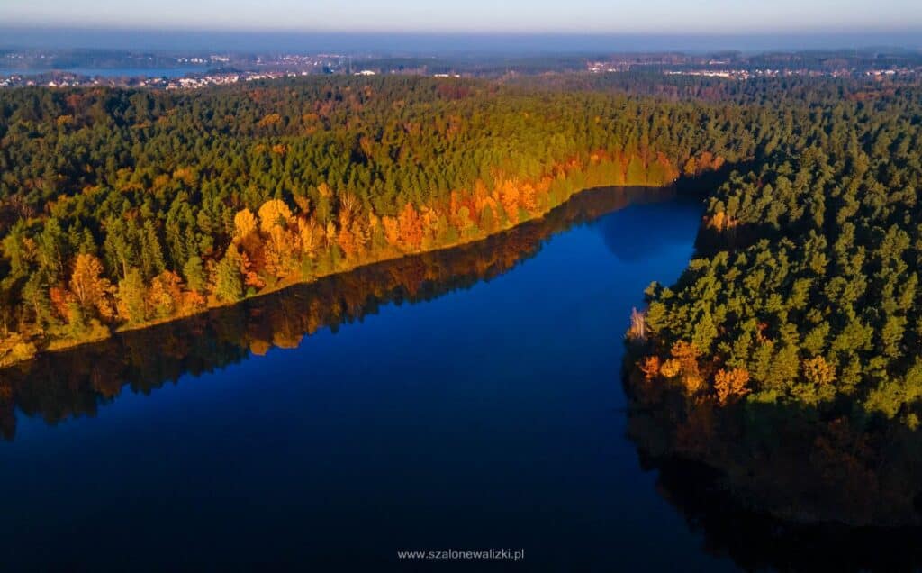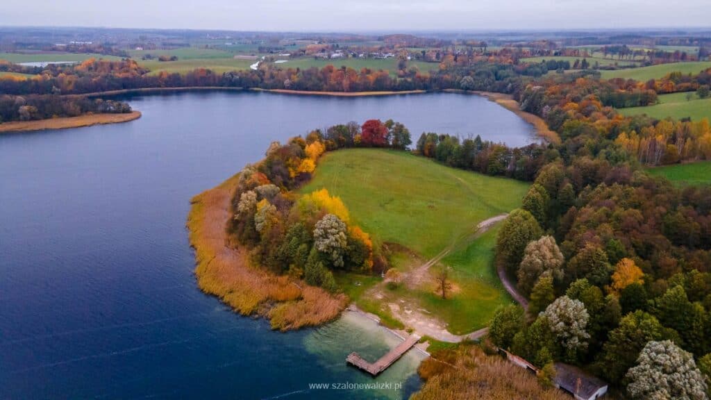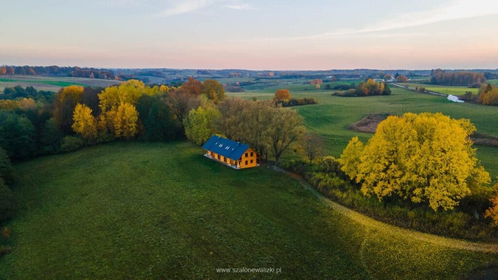 Piękne domki, budowane z sezonowanego drewna, leżą na zboczu wzgórza we wsi Bieniasze. Byliśmy tu wiosną i było uroczo ale pełne zaskoczenie mieliśmy jesienią, gdy liściaste drzewa wybarwiły się, pięknie zdobiąc warmiński krajobraz.