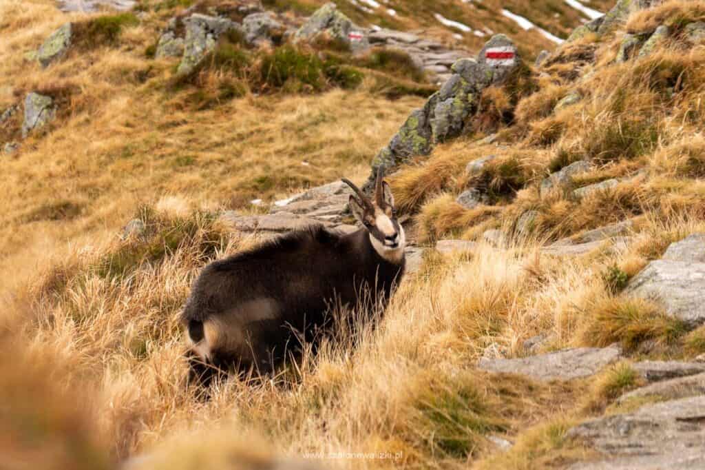 Na tej trasie nie mieliśmy jakiegoś wyjątkowego szczęścia do pogody. Słońce walczyło by przebić się przez chmury. Ale za to trafiliśmy na trzy rodziny kozic, co od razu poprawiło nam humor.