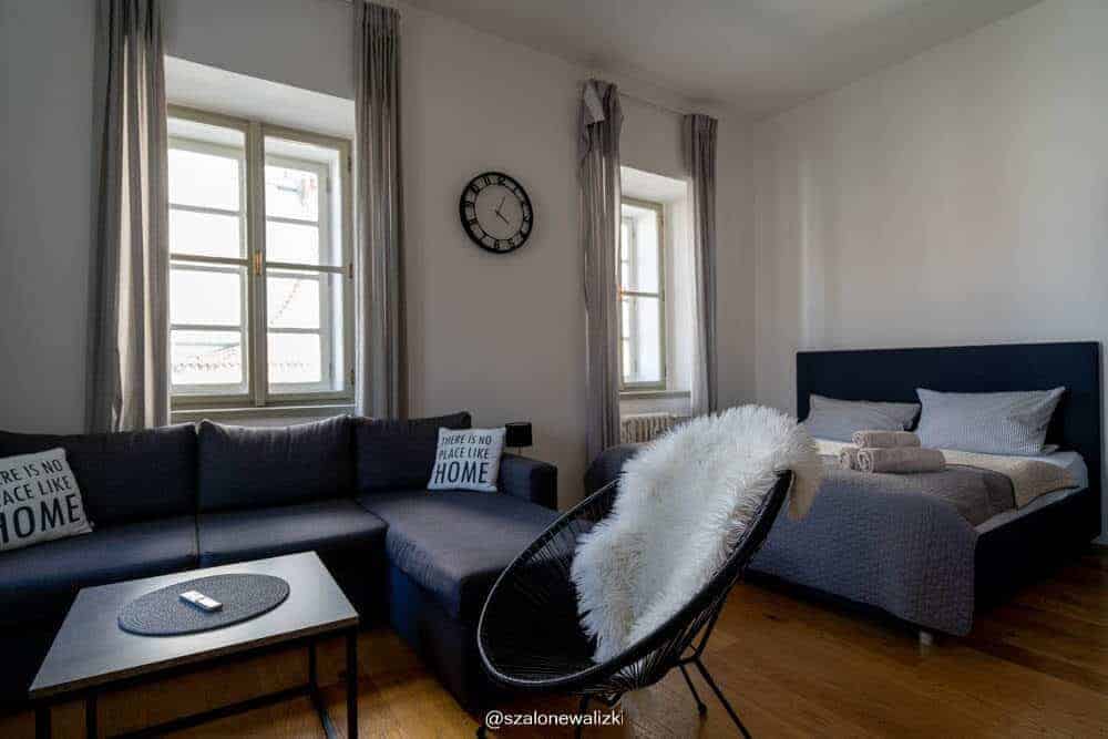 Zdecydowanie możemy polecić miejsce, które znaleźliśmy na Bookingu i okazało się strzałem w dziesiątkę. W rogu rynku, obok muzeum i białego kościoła znaleźliśmy apartament „U Zlate Hvezdy”.