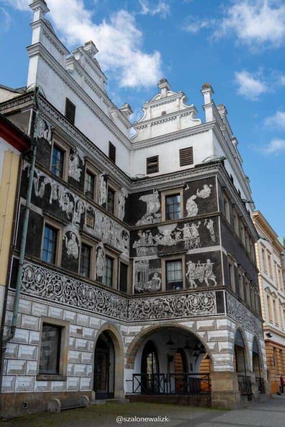 To renesansowy Dom „Czarny orzeł“ („Černý orel“), który zachował swój oryginalny wygląd i wyjątkowe grafiki ilustrujące życie mieszkańców i regionu.