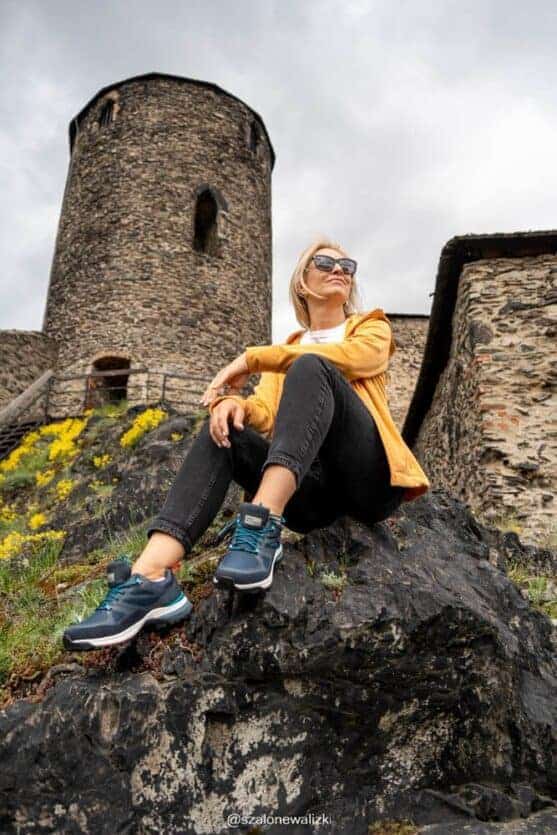Kupując bilet poproście o ulotkę w języku polskim. Po wejściu do zamku możemy być zaskoczeni jak rozbudowana i ciekawa była to fortyfikacja. Ma kilka sal, wieżę i widok na każdą stronę doliny Łaby. Łatwo było się z tego miejsca bronić.