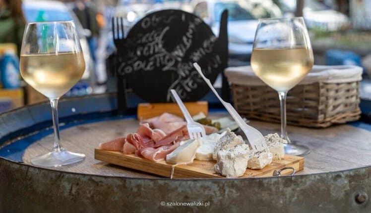Jeden ze sprzedawców szybko rozwiązał nasz dylemat podając dwa solidne kieliszki schłodzonego, białego wina. Po chwili doniósł dwa talerze pyszności, gdzie znalazła się świetna mortadela i oliwki.