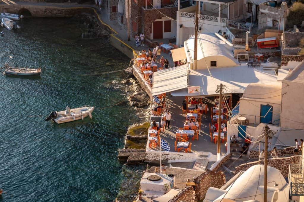Na kolację w Oia możemy polecić rewelacyjną knajpkę u dołu klifu, która nazywa się Katina Fish Tavern. Serwuje niezapomniane ryby i ośmiornice.