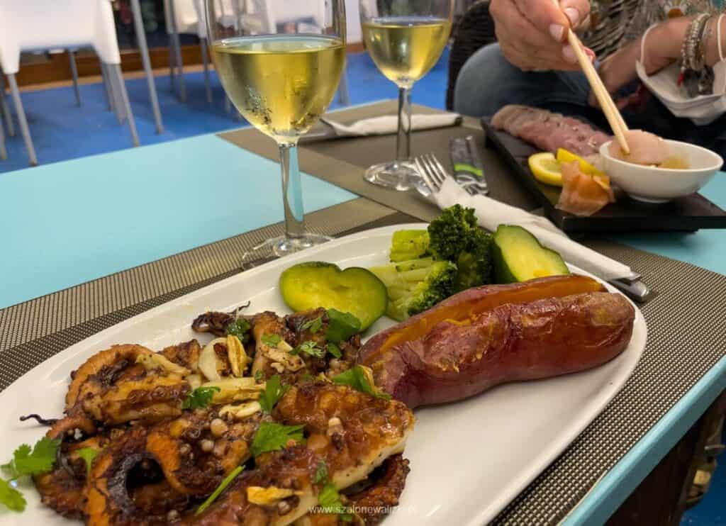 Dania wjeżdżały po kolei ale na początku pojawiło się dobrze schłodzone vinho verde, które idealnie pasuje do ryb i owoców morza.