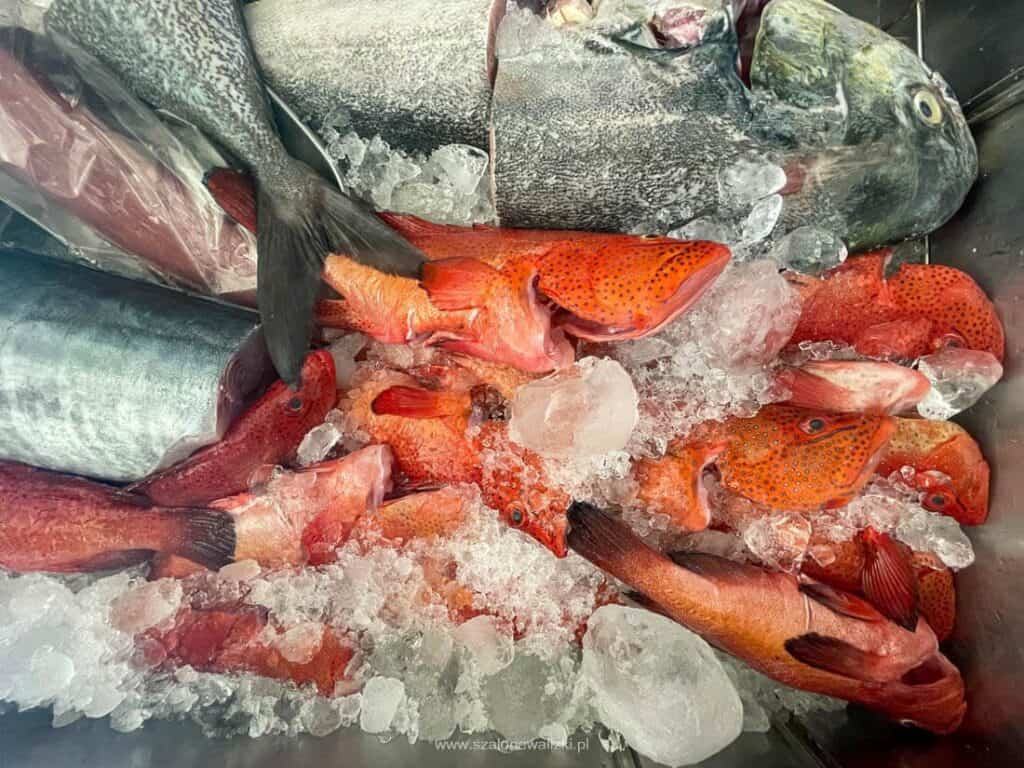 Wybór ryb i owoców morza był duży a my zdecydowaliśmy się na garoupa ( to taka czerwona ryba z plamkami ) oraz ośmiornicę i krewetki.