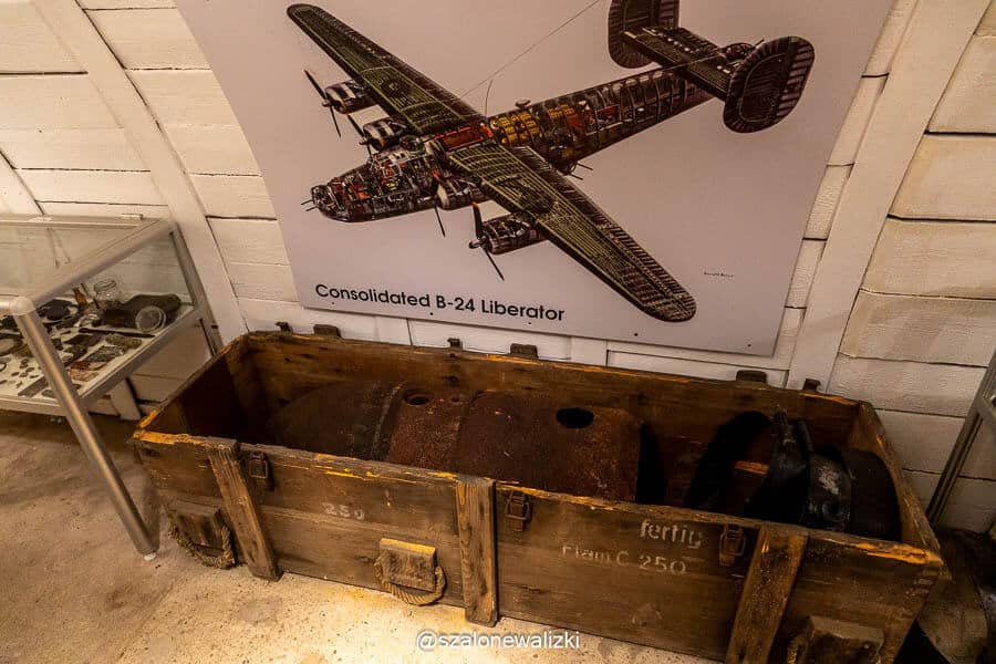 Na zewnątrz znajdują się gabloty ze szczątkami samolotów zestrzelonych podczas bombardowań.