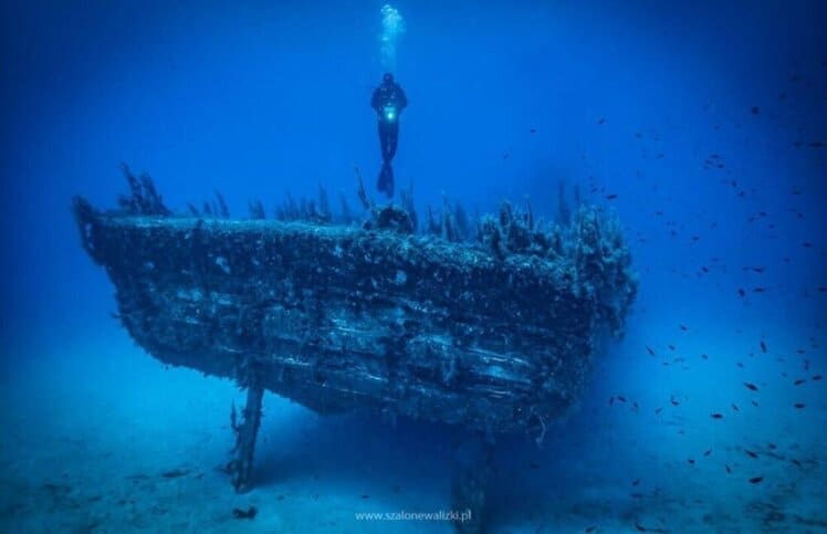 Widać, że wrak spoczywa już na tyle długo pod wodą, że mocno porósł i stał się domem wielu ryb, zwierząt i korali.