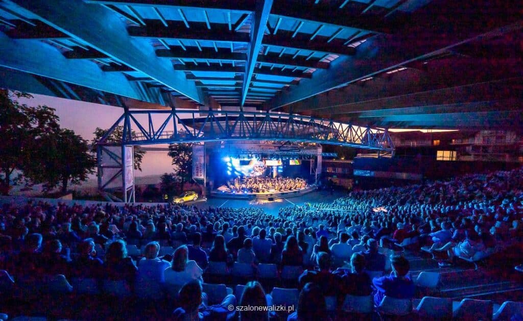 Jego największym atutem jest w pełni zadaszona widownia co pozwala uniezależnić się od pogody. W wakacje, co weekend odbywają się w nim mniejsze lub większe koncerty a jednym z największych wydarzeń jest festiwal muzyki filmowej Arena Festival film&music , który odbywa się w każdy pierwszy weekend lipca rozpoczynają w ten sposób oficjalnie sezon letni na Mazurach.