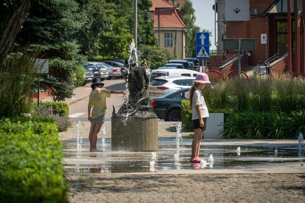 Na tym skwerze jest jedna z większych fontann w mieście, gdzie w upalne dni można schronić się w cieniu drzew a dzieci bez ogródek chłodzą się wprost w fontannie.