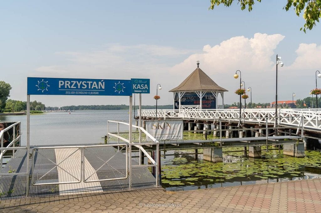 Prawie naprzeciwko molo znajduje się biuro Żeglugi Ostródzko-Elbląskiej, gdzie można kupić bilety na „rejsy po trawie”.