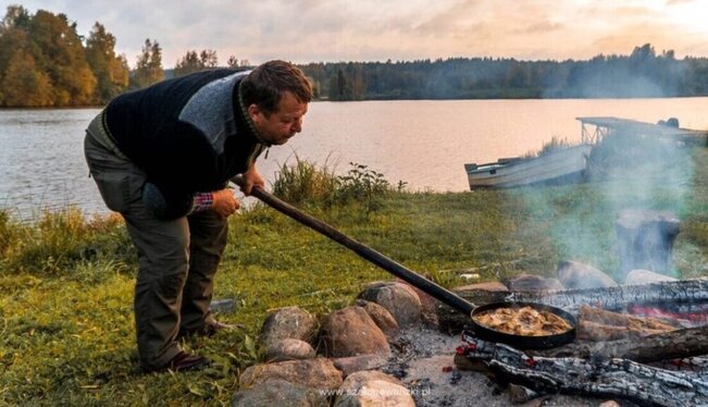 Okazało się, że są do tego potrzebne: świeżo wyłowiony, dorodny szczupak i karp do porównania smaków, żeliwna patelnia na długiej rączce odlana w lokalnym zakładzie, odrobina soli i pieprzu oraz solidne ognisko nad brzegiem jeziora.