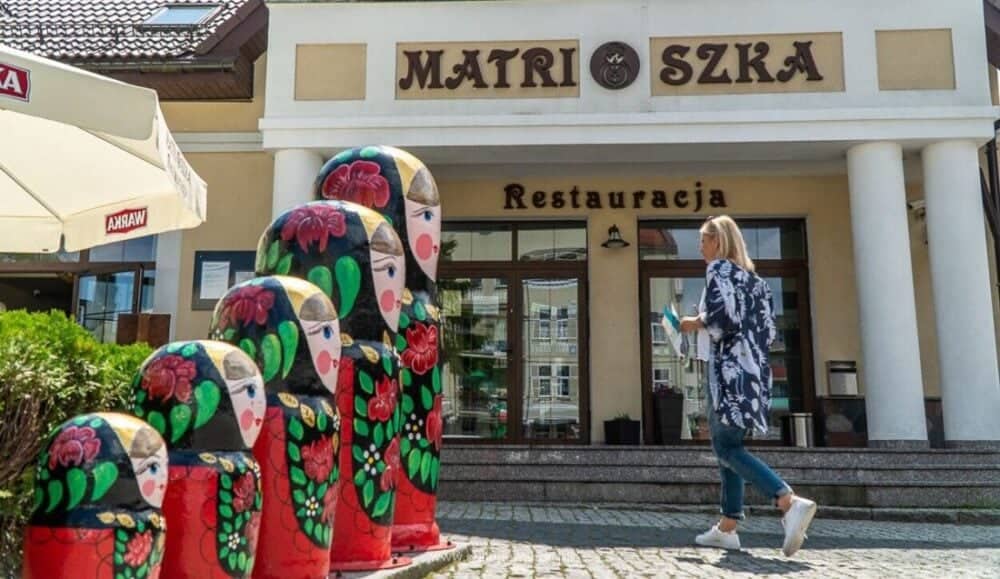 Restauracja Matrioszka w Gołdapi opowiada więcej o miejscu, do którego trafiamy niż niejeden przewodnik. Gołdap jest bowiem klasycznym miastem granicznym na granicy z Rosją. Blisko stąd także na Litwę. Wpływy obydwu kultur są odczuwalne w Gołdapi a w Matrioszce, która specjalizuje się w kuchni polskiej i rosyjskiej – szczególnie.