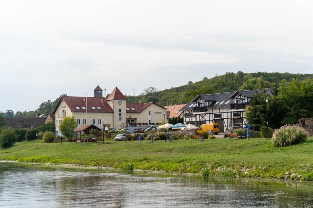 Obok jest pole campingowe, gdzie można rozbić namiot czy postawić kampera. A jeśli ktoś szuka noclegu po dachem to można wynająć jeden z domków, które znajdują się na terenie Mariny.