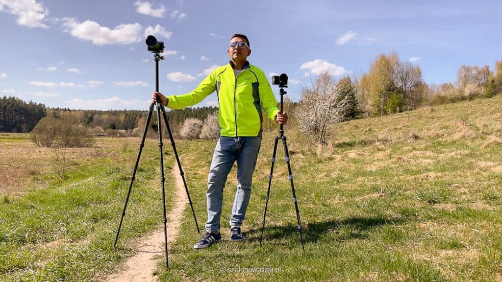 Statyw Benro Slim Travel, który uwielbiałem przez lata i dalej bardzo lubię, niestety bywał zbyt niski, gdy byłem zmuszony nagrać samego siebie lub zrobić wspólną fotkę Dorotce i mnie wywołując zdalnie migawkę.