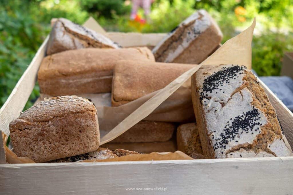 W poszukiwaniu chleba spokojnie można zajść również do DobrePola, gdzie znajdziesz nie tylko chleb z różnymi dodatkami z eko mąki ale też wege pasztet z zieloną soczewicą, kaszą gryczaną i ziołami – m.in. kosanką włoską, estragonem i tymiankiem robiony przez Michała.