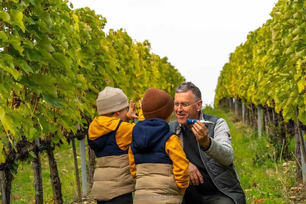 Sanyi dogląda winnicy i uczy swoje wnuki